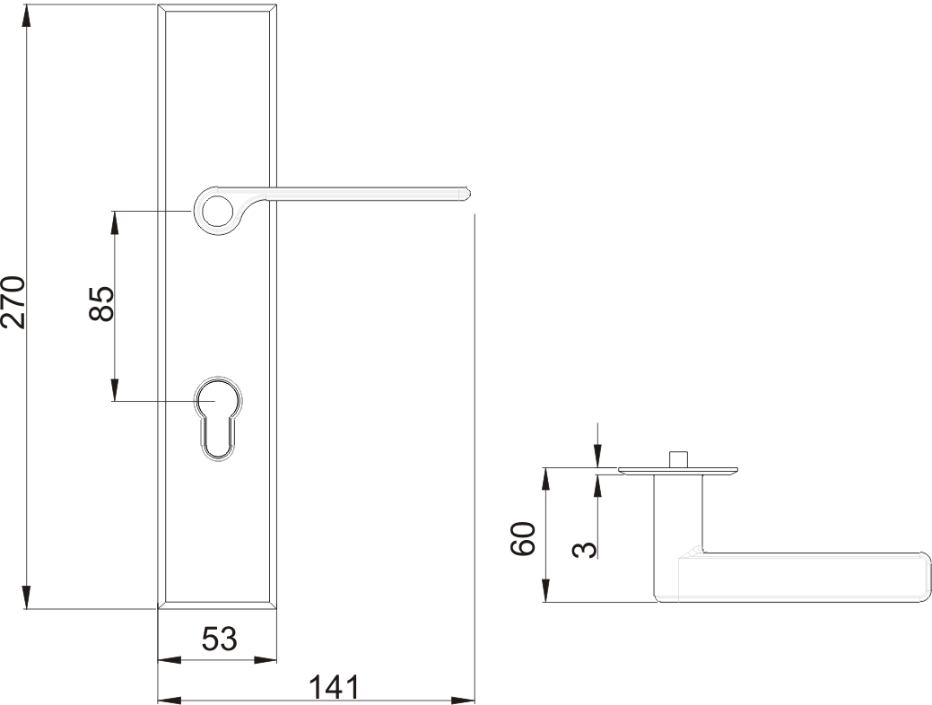 3將方桿穿過(guò)門板插入鎖體(如下圖:D)。