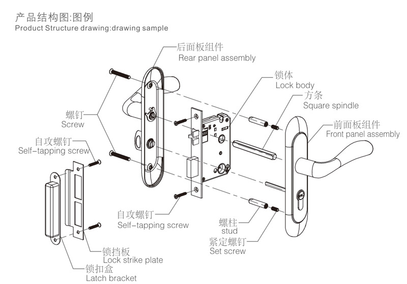 6擰緊螺釘,安裝扣板及扣盒,對(duì)齊鎖體,應(yīng)使鎖舌與之配合順暢,擰緊螺釘(如上圖:H)。