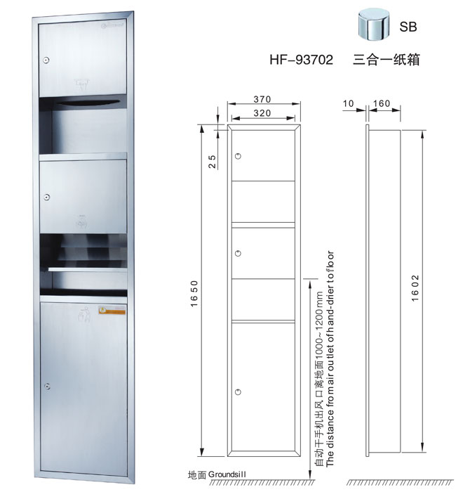 產(chǎn)品配置:3把915柜鎖,1臺HJ4002干手機(jī)