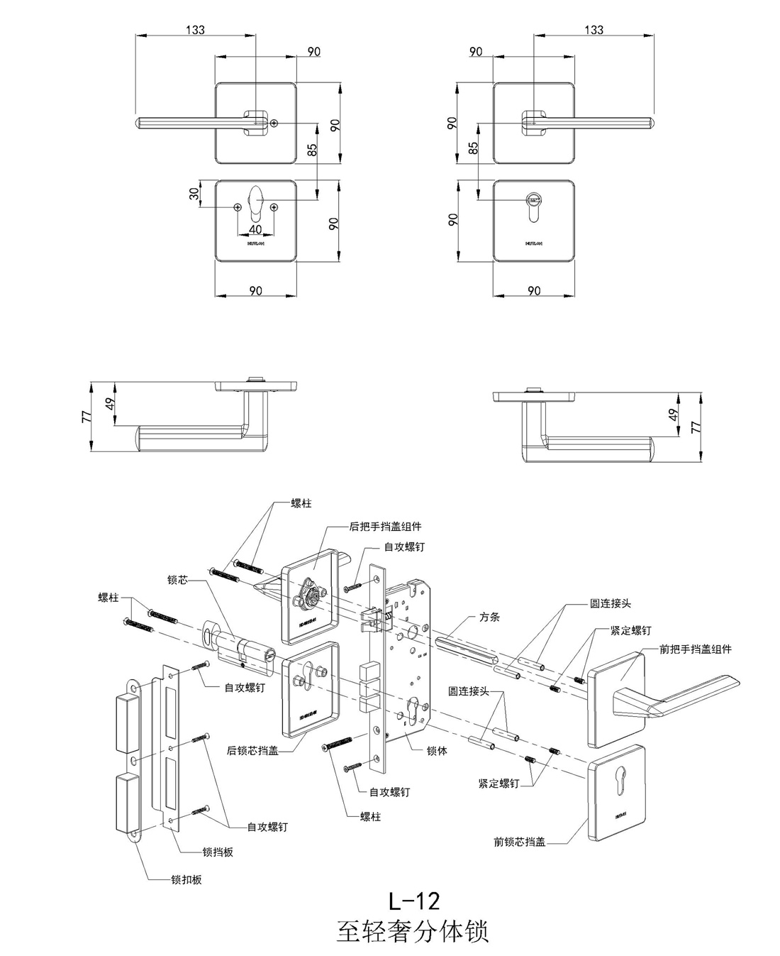 1. 大門鎖采用H59銅制造,具有外觀精美、時尚的造型,生產(chǎn)工藝精細,把手觸摸手感佳。
