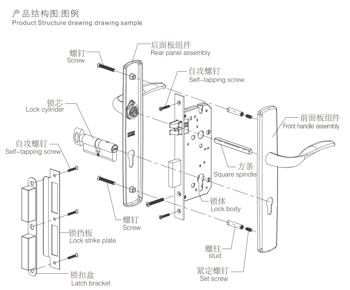 6擰緊螺釘,安裝扣板及扣盒,對齊鎖體,應(yīng)使鎖舌與之配合順暢,擰緊螺釘(如上圖:H)。