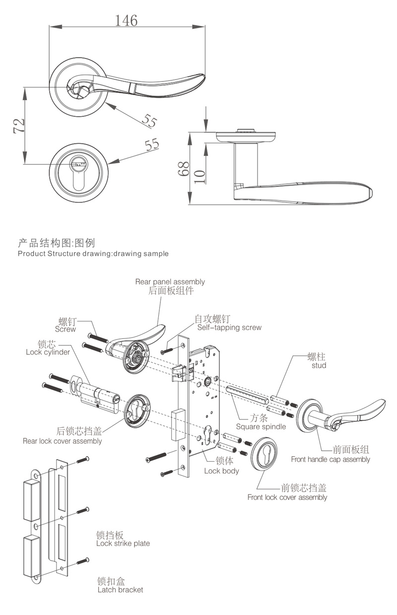 4安裝內外面板,使把手轉動順:擰緊螺釘(如上圖:E-F)。